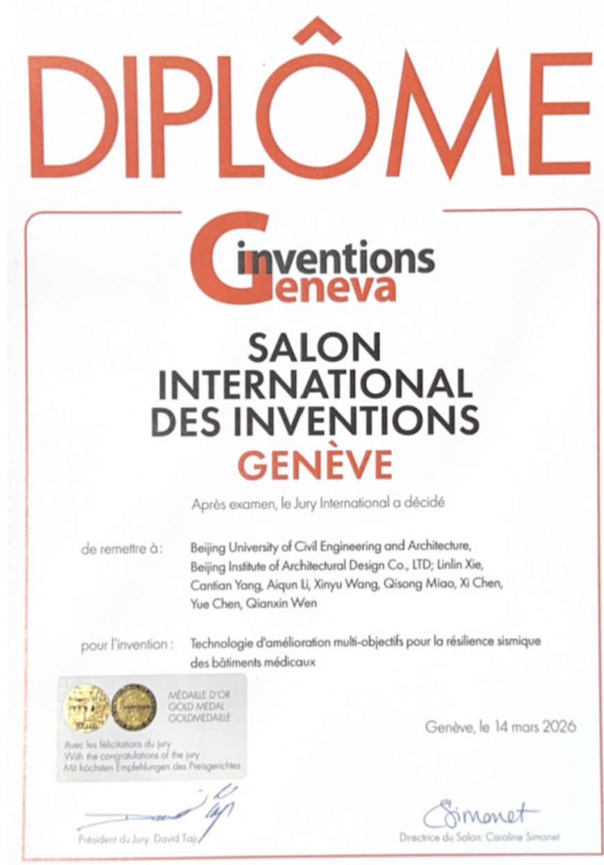 3月15日,在第51届日内瓦国际发明展上,伟德国际1946源自英国解琳琳、李爱群教授团队研发的“医疗建筑抗震韧性多目标协同提升技术”,从全球35个国家和地区的1000多项发明中脱颖而出,荣获最高级别的评审团特别嘉许金奖,这是学校首次参加日内瓦国际发明展,并一举夺得最好成绩,实现历史性突破。