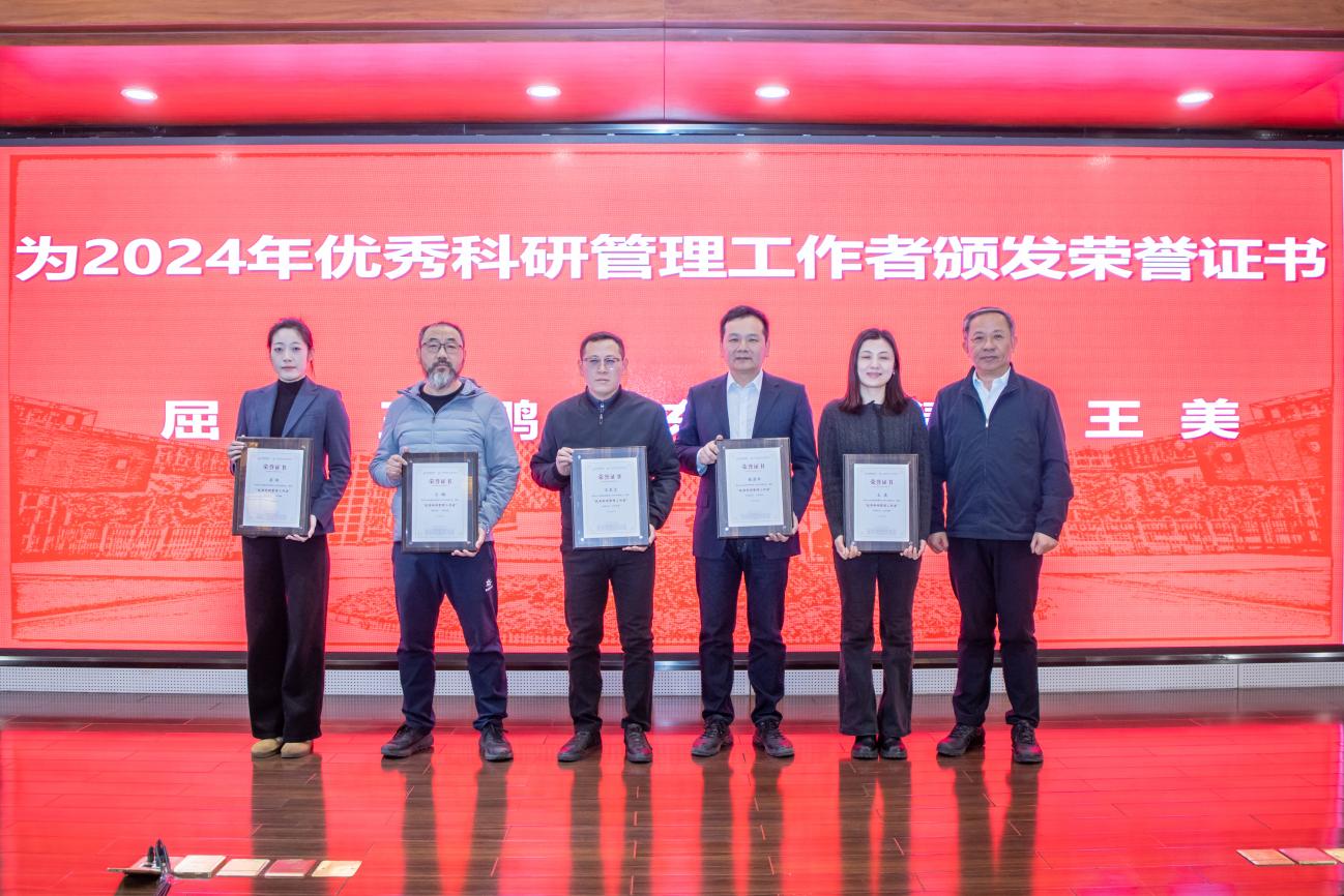 会上,张大玉为2024年度学校优秀科研管理工作者与优秀科研管理集体、2024年度学校“十大科技进展”项目团队颁发荣誉奖牌。