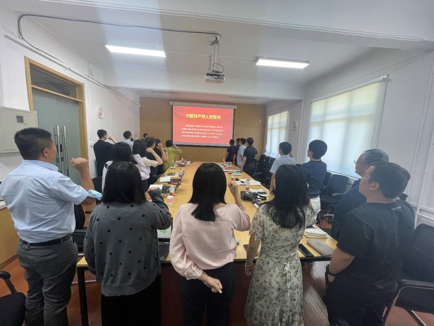 最后,支部书记周理安带领全体党员重温入党誓词。下一步,科发院全体党员干部将对标主题教育“学思想、强党性、重实践、建新功”要求和学校第二次党代会提出的奋斗目标,把思想和行动统一到学校的中心工作上来,充分发挥党组织的战斗堡垒作用和党员的先锋模范作用,在学校的科技创新事业发展中勇争先锋,作出更大贡献。