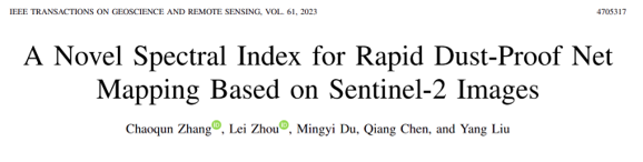 周磊教授团队开发了一种新的防尘网光谱指数(DPNI)。DPNI能够很好地突出城市内的防尘网区域,并抑制其他地物类型。结果表明,基于阈值分割方法,DPNI能够准确地识别城市内的防尘网区域,对于主要类型的防尘网均有效,为大尺度快速的防尘网制图提供了一种新的、可靠的方法。相关研究成果以“A novel spectral index for rapid dust-proof net mapping based on Sentinel-2 images”为题,发表于地球科学和遥感领域顶级期刊《IEEE Transactions on Geoscience and Remote Sensing》。