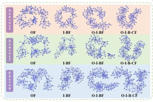 团队提出了基于相关方差贡献的数据级融合方法,应用于振动信号融合上,将原始AVS数据和融合后的振动信号输入到自适应聚合可视图模型中,并映射为最优的图结构数据,以更好地捕捉数据之间的关联关系,提高分类精度。基于改进的DiffPool方法对图结构数据进行降采样,减少特征维度并保留关键信息。再将特征向量进行拼接融合,构建全局特征向量,并实现滚动轴承故障的分类。多组实验结果表明,该方法能够充分利用AVS数据,识别不同故障类型,具有先进性和优越性,为后续图神经网络在智能诊断中的应用提供参考。