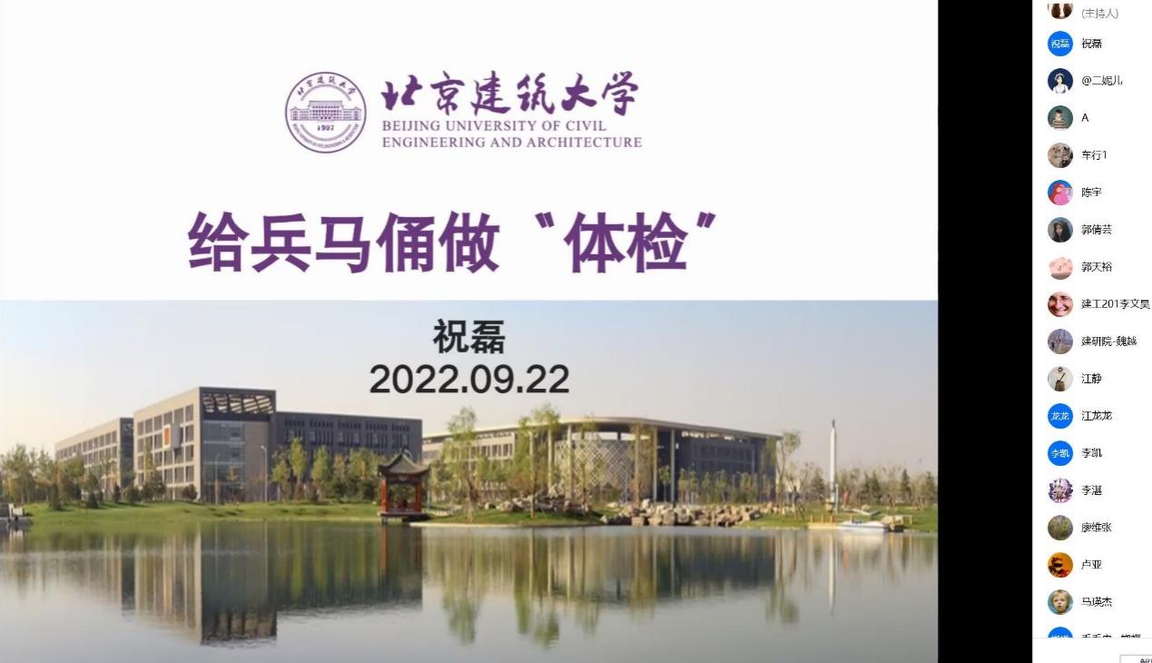 在2022年全国科普日来临之际,为进一步弘扬科学精神,普及科学知识,激发科学梦想和科学志向,激励创新创造潜能,9月22日,我校科学技术协会组织举办了2022年全国科普日系列活动,邀请我校土木学院祝磊教授线上直播科普讲座《给兵马俑做“体检”》,来自校内外的百余名观众参加。