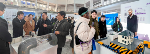 与会嘉宾现场参观我校科技成果展览和路演项目。我校文物建筑无线火灾报警技术研究及应用、城镇管网智能监管关键技术与装备两项科技成果为专题路演项目,分别介绍了拟解决问题和市场分析、成果创新点和技术优势、成果转化和产业化情况以及转化需求和融资计划