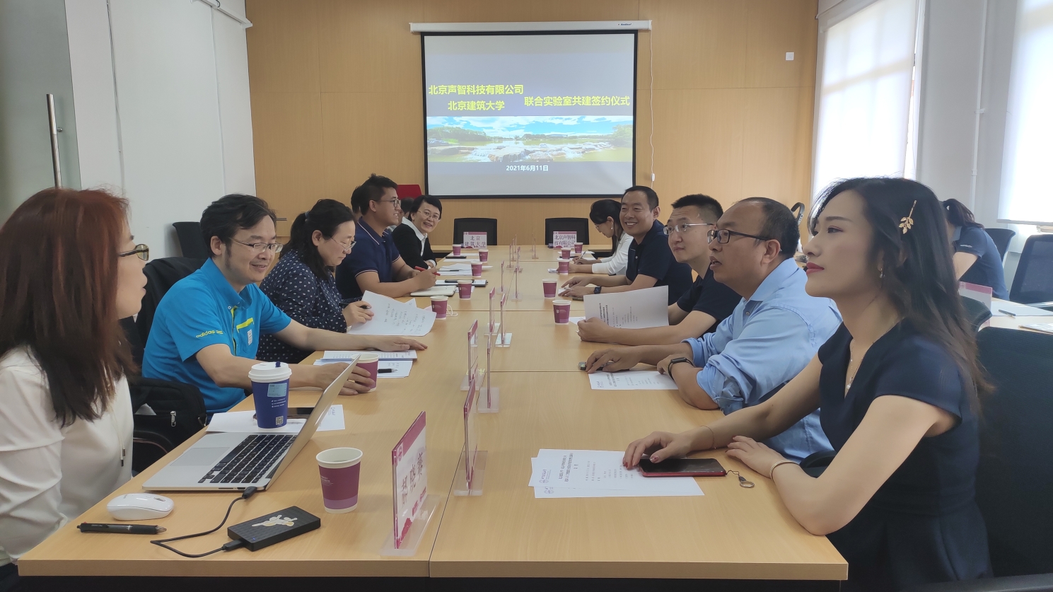 6月11日上午,学校与北京声智科技有限公司签署建筑与人工智能联合实验室联合共建协议并举行了揭牌仪式和合作交流研讨会,双方商定建立定期交流和总结机制,聚焦城市更新、建筑遗产防灾检测性保护、声景观环境营造、医养建筑、建筑安全防灾等方面展开深入合作。北京声智科技有限公司参会领导包括董事长兼CEO陈孝良、 联合创始人兼CTO冯大航、联合创始人兼CKO常乐、智慧城市事业部总经理周治国、总经理助理朱亚冰、人力资源总监王悦、品牌公关经理周林。学校参会人员包括科学技术发展研究院副院长周理安,建筑与城市规划学院副院长李春青、院长助理俞天琦、建筑系主任郝晓赛、技术部主任邹越、城乡规划系教师苏毅等,电气与信息工程学院马鸿雁副院长、周若华教授等。签约仪式及座谈交流会由李春青副院长主持。