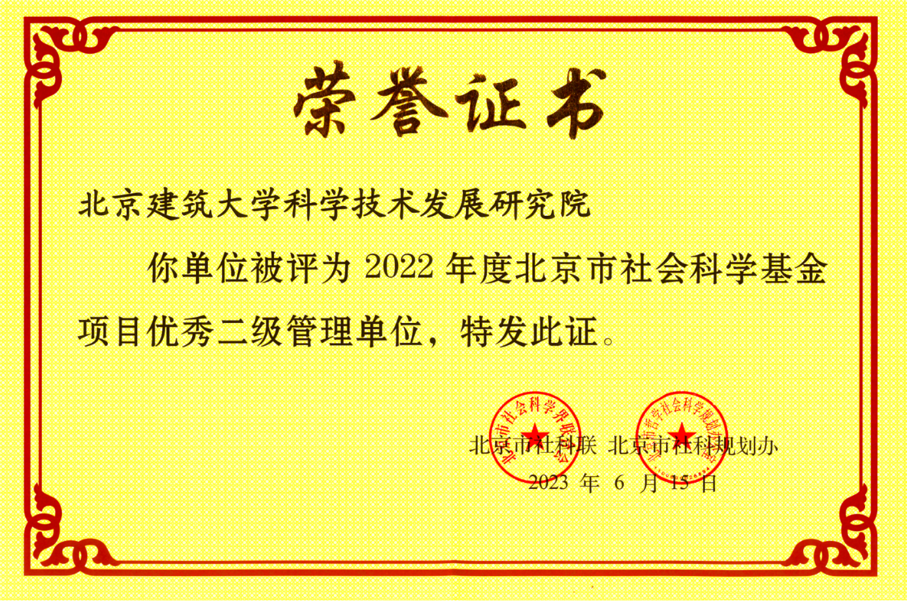 近日,北京市社会科学界联合会、北京市哲学社会科学规划办公室公布了2022年度北京市社会科学基金项目优秀二级管理单位,伟德国际1946源自英国科学技术发展研究院获评“2022年度北京市社会科学基金项目优秀二级管理单位”,将在2023年度的北京市社科基金规划项目中增加10项申报名额。