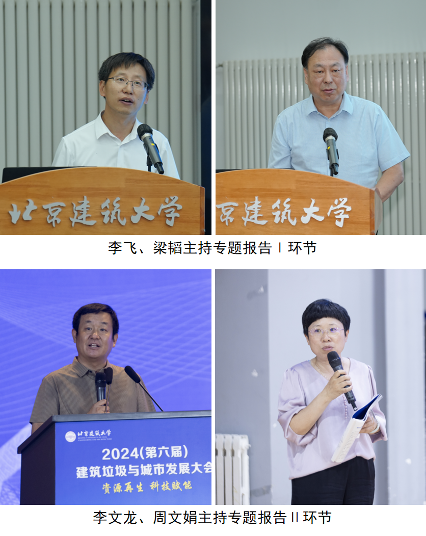 住房城乡建设部建筑垃圾资源化工程技术创新中心首席专家李飞教授、北京节能和资源综合利用协会秘书长梁韬主持专题报告Ⅰ环节,中国城市环境卫生协会建筑垃圾管理与资源化工作委员会秘书长李文龙、副秘书长周文娟教授主持专题报告Ⅱ环节。