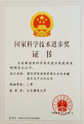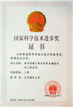 获奖项目中,我校作为第二完成单位、陈家珑教授作为第二完成人、李飞副教授参与完成的成果“建筑固体废物资源化共性关键技术及产业化应用”获得国家科技进步二等奖;我校作为第二完成单位、周文娟副教授参与完成的成果“废旧混凝土再生利用关键技术及工程应用”获得国家科技进步二等奖。