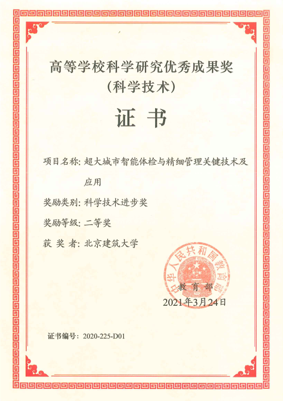 近日,教育部办公厅颁发了《教育部关于2020年度高等学校科学研究优秀成果奖(科学技术)奖励的决定》(教科信〔20211号),我校作为第完成单位、测绘学院杜明义教授主持的超大城市智能体检与精细管理关键技术及应用项目获高等学校科学研究优秀成果奖(科学技术)科学技术进步二等奖本项目是本年度市属高校理工类唯一牵头获奖项目。