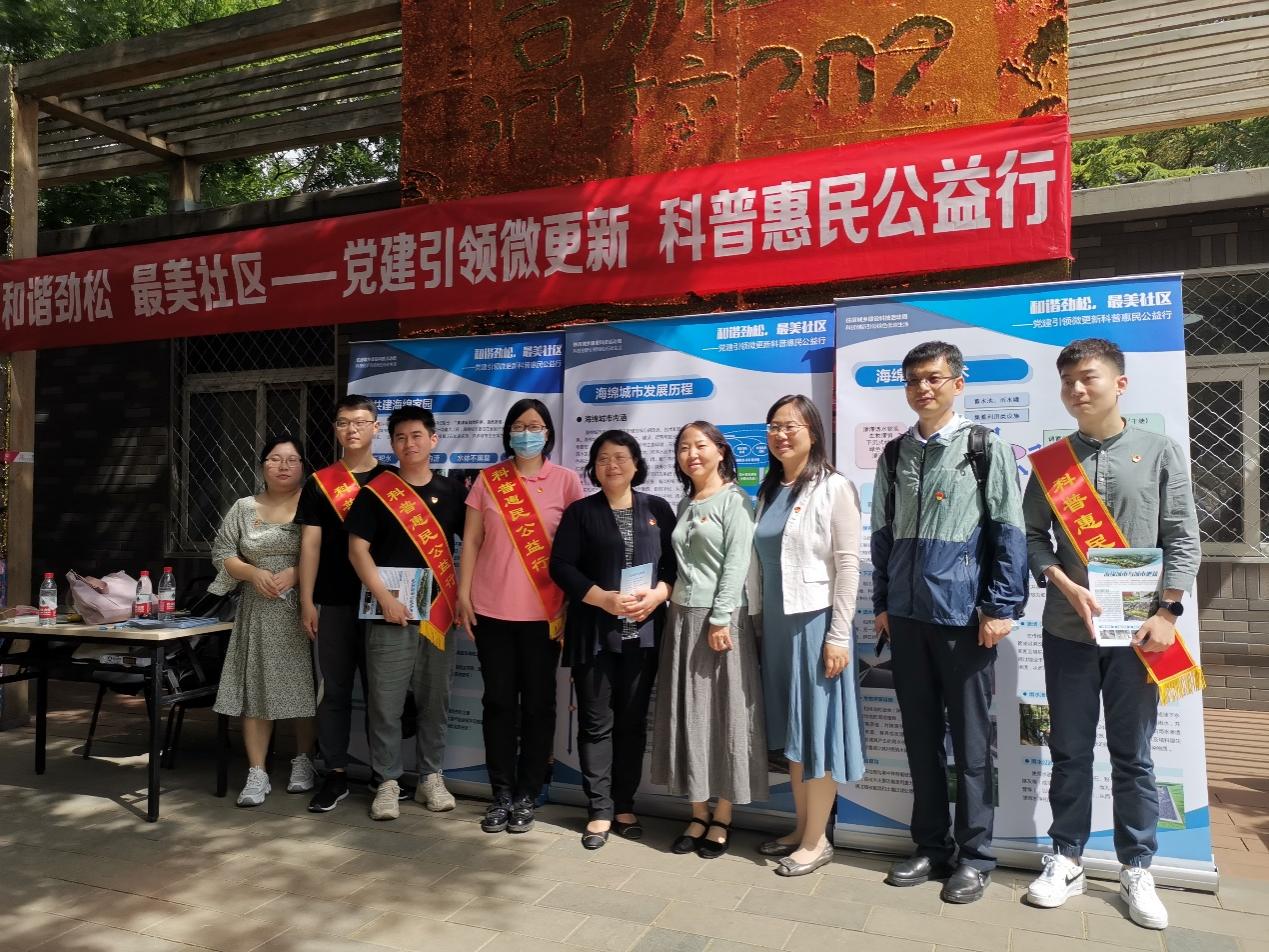 在全国科技活动周期间,我校与住房和城乡建设部标准定额司党支部与住房和城乡建设部科技与产业化发展中心第四党支部、北京愿景集团、北京自来水集团有限公司共同组织“我为群众办实事 • 和谐劲松,最美社区——党建引领微更新 科普惠民公益行”主题实践活动,开展科学知识普及宣传工作,推动科技创新引领绿色低碳生活。我校研究生院常务副院长周霞、环境与能源工程学院副书记孙强、环境工程教工党支部书记张晓然、环境研究生党支部党员代表参加活动。