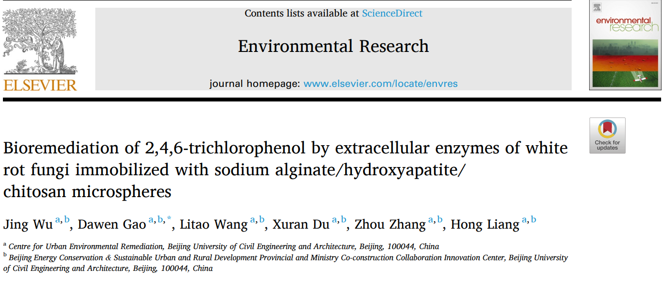 高大文团队利用制备得到的海藻酸钠/羟基磷灰石/壳聚糖多孔微球固定白腐真菌胞外粗酶,揭示了不同条件下固定化粗酶对水体和土壤中2,4,6-三氯苯酚的降解机制及其降解效果。相关研究成果以“Bioremediation of 2,4,6-trichlorophenol by extracellular enzymes of white rot fungi immobilized with sodium alginate/hydroxyapatite/chitosan microspheres”为题,发表于《Environmental Research》。