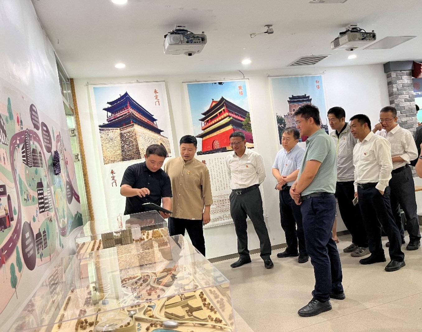 中工国际第一党支部书记、人力资源部总经理宋哲、科技发展部总经理孙巍介绍了中工国际的发展历程和国内外项目情况,表达了与我校继续扩大和深化城市建设、城市设计、人才培养等领域的合作愿景;中国中元建筑三院副院长王晓启介绍了数字化技术在城市设计、建设项目中发展趋势,分享了数字化技术在多个医疗项目中的实践应用案例;科发院党支部副书记、副处长王万鹏介绍了我校发展历程及科技创新成就。与会人员还实地调研北京老城保护更新基地和城市更新研究中心,现场体验了AI建筑展示与设计技术。