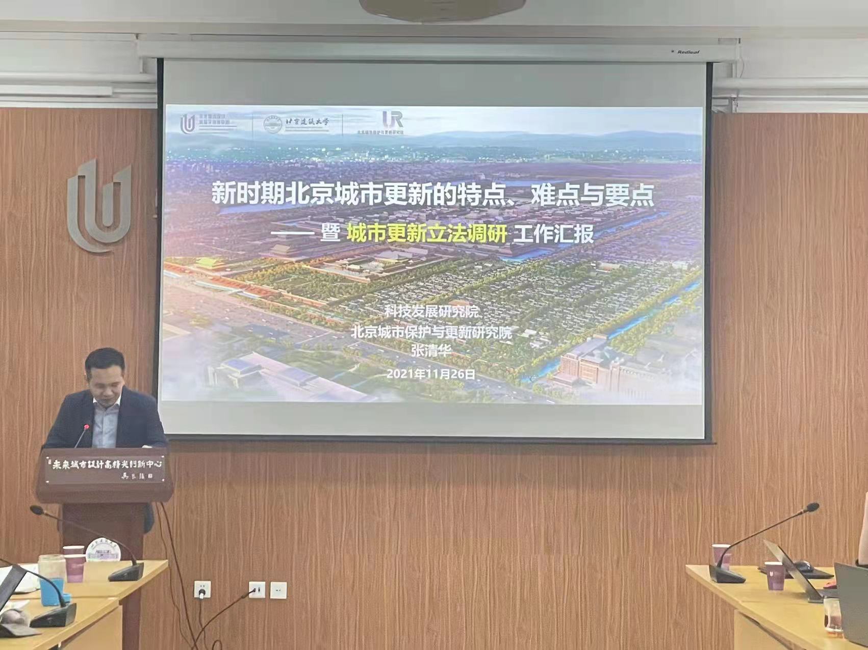 全体人员首先听取了题为《新时期北京城市更新的特点、难点与要点——暨城市更新立法调研》的辅导报告,引导科发院全体人员围绕北京市和学校重点领域工作深入思考