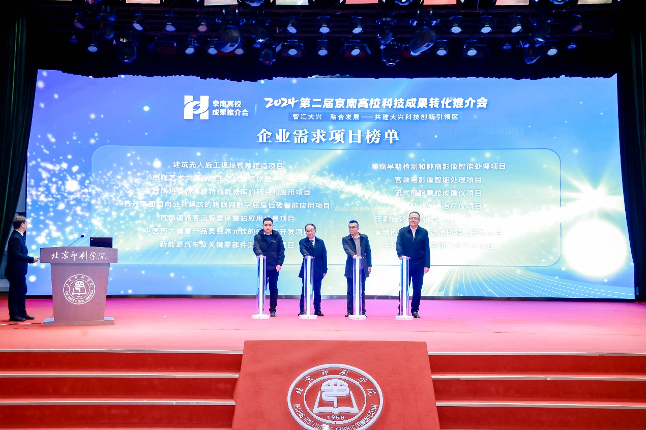 11月30日,我校组织校内科研团队、校外企业赴北京印刷学院参加“2024第二届京南高校科技成果转化推介会”。我校党委副书记、校长张大玉,党委常委、副校长李俊奇,科学技术发展研究院执行院长周理安,党政办副主任韩志鹏,科学技术发展研究院副院长薛重华,科研项目团队代表岳云涛、张蕾及其他师生代表,北京中创碳投科技有限公司董事、副总经理郑喜鹏,北京知识产权运营管理有限公司运营总监朱明光及其他相关建筑类龙头企业参加。