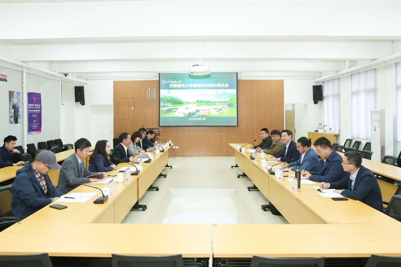 1014日,安徽建筑大学校长黄显怀一行来校调研,双方就深化两校合作进行了交流座谈校长张大玉出席会议党政办主任朱静研究生院常务副院长周霞、土木学院党委书记韩淼、科发院副院长周理安相关职能部门、学院负责人参加会议