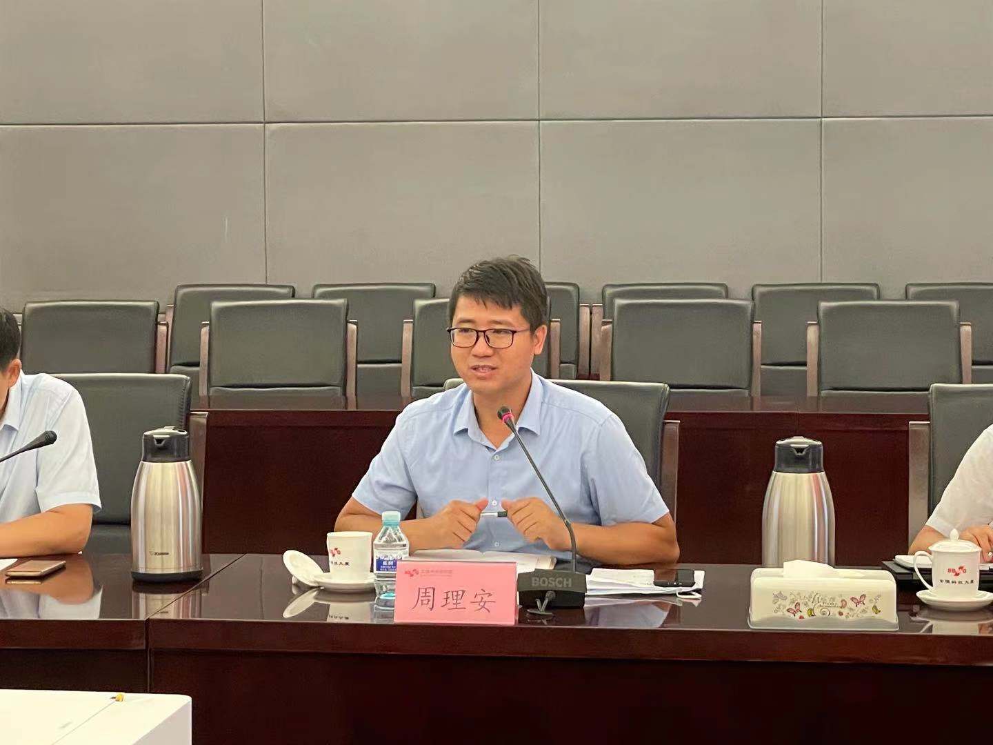 周理安介绍了学校近期发展和科研情况,重点从学校近期发展概况和代表性科研方向与成果两个方面入手介绍了学校近期发展和科研情况,并就双方下一步合作提出了相关建议