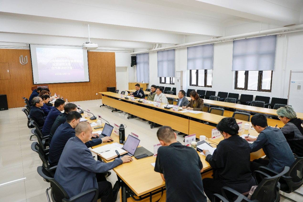 北京京企中轴线保护公益基金会相关负责人,我校科发院、文发院、校友联络发展处、团委、学工部、资产公司、建筑学院、建筑设计研究院及工作专班人员共30人参加会议。会前,梅松一行参观了建筑与城市规划学院智慧创新中心、生土研究中心、遗产数字化实验室、高精尖创新中心。