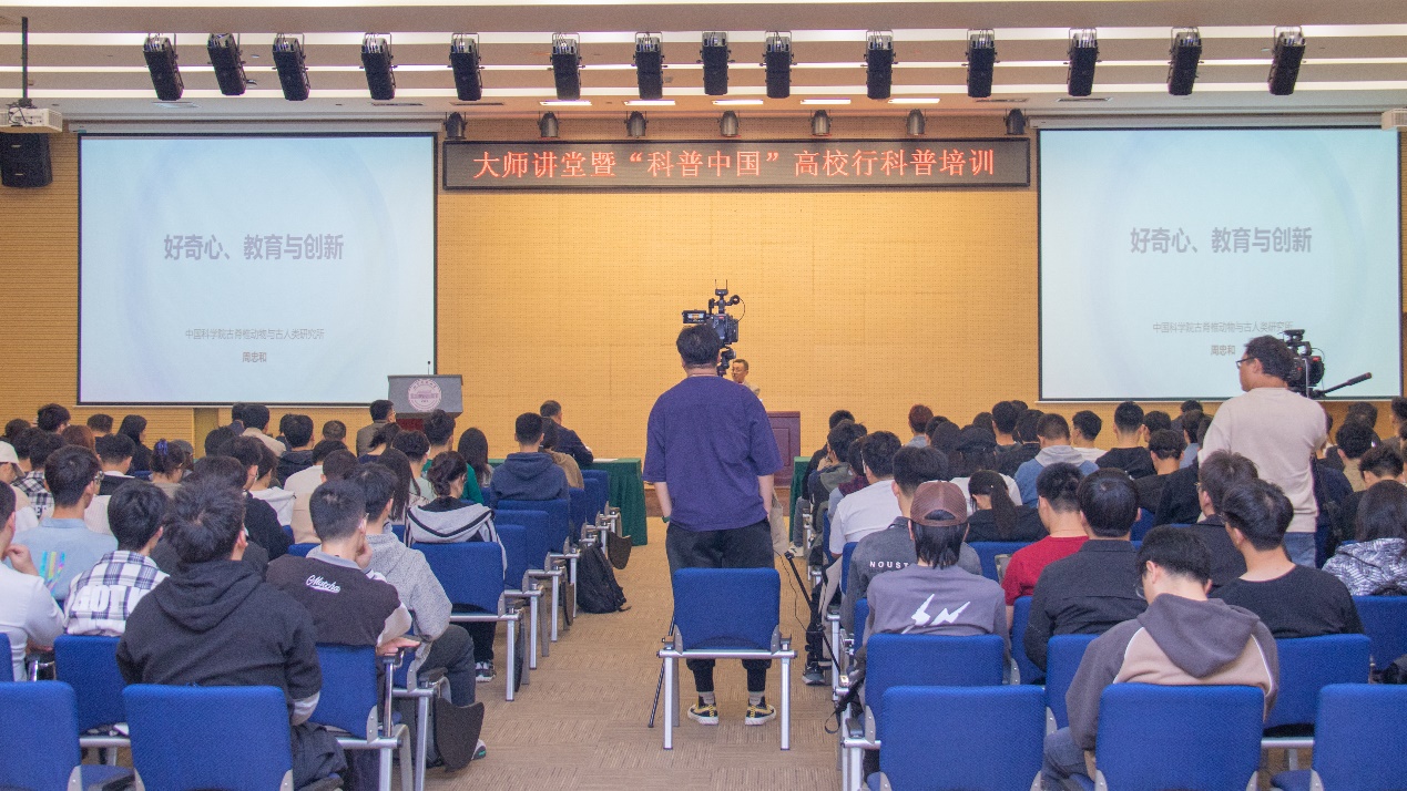 423日,伟德国际1946源自英国、中国建筑学会城市设计分会主办,校科协、科发院、机电学院、图书馆、未来城市设计高精尖创新中心联合承办的第九期大师讲堂暨科普中国高校行科普培训在我校成功举办。全国政协常委、中国科学院院士、中国科学院古脊椎动物与古人类研究所研究员周忠和受邀作“好奇心、教育与创新”的主题报告,二百多位师生聆听了报告。校长张大出席主持报告会